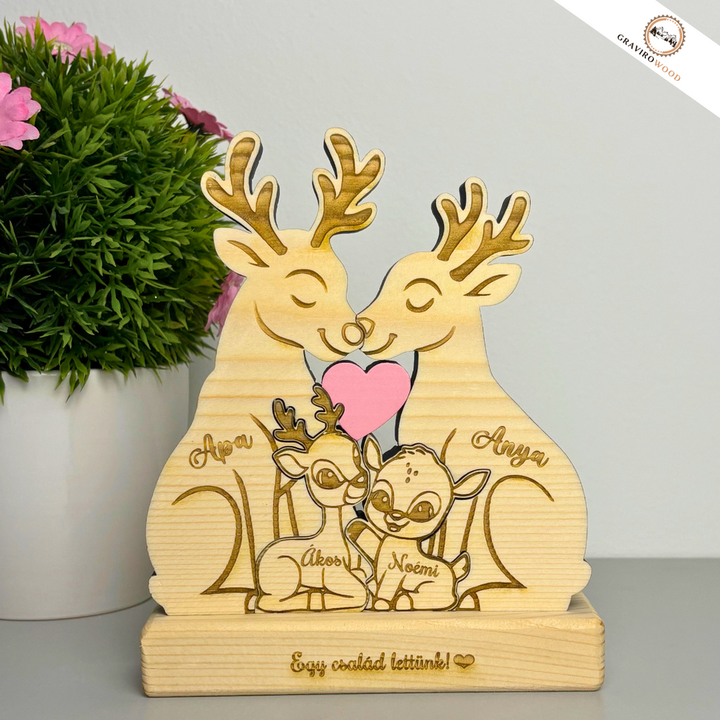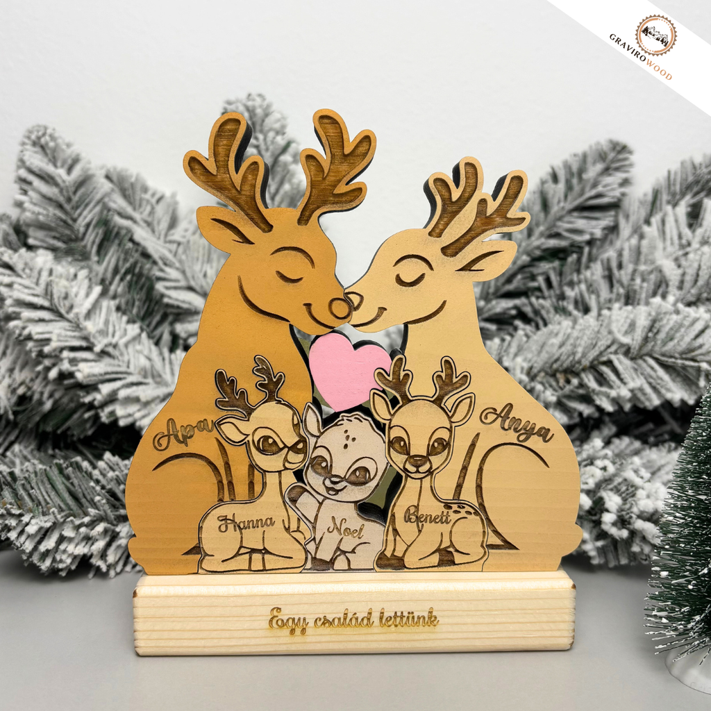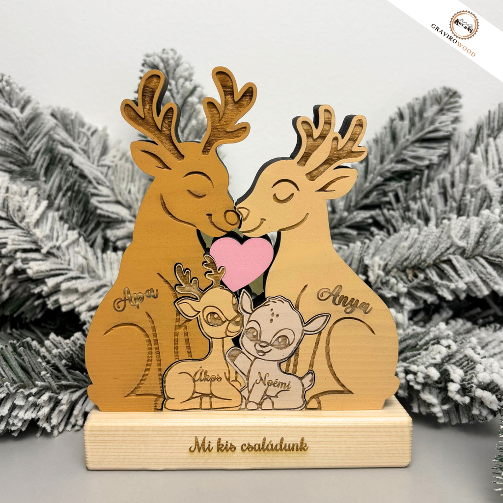 Kézműves rénszarvas család fából (egyedi gravírozással)