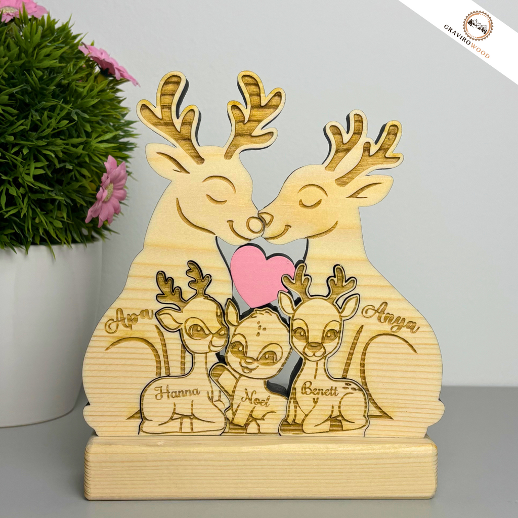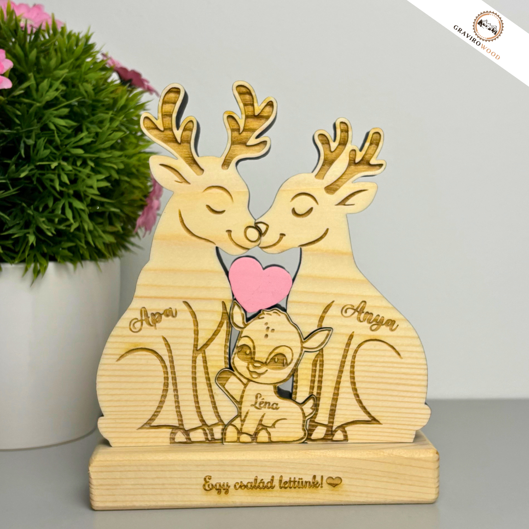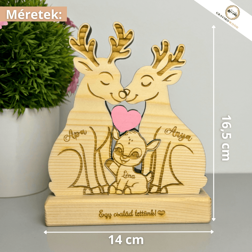 Kézműves rénszarvas család fából (egyedi gravírozással)