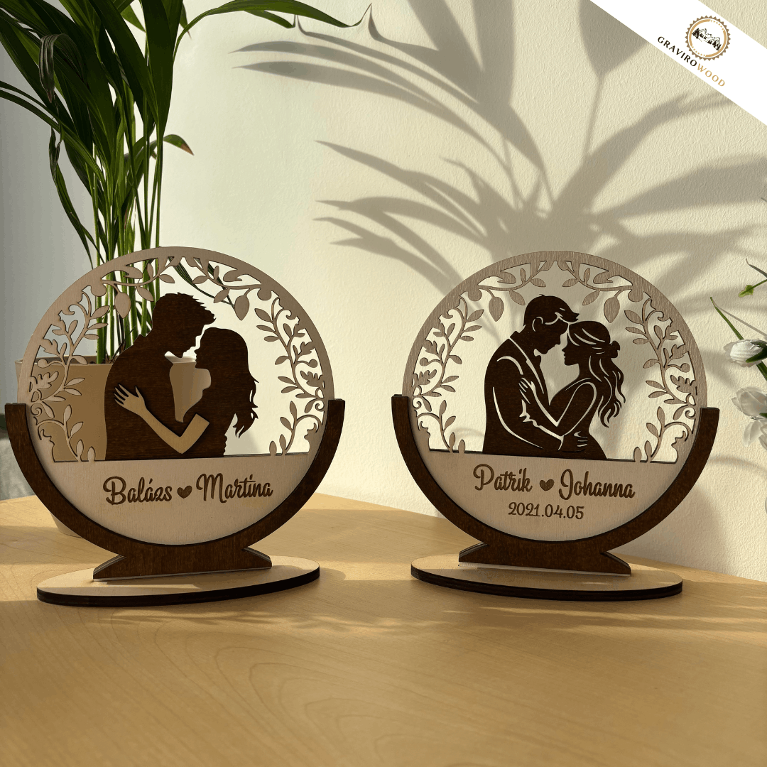Ez nem egy szokványos dekor. Ez a kapcsolatotok jelképe. A finoman kidolgozott, kör alakú forma az egységet szimbolizálja, a középpontban álló szerelmes pár pedig titeket: ahogy egymásban megtaláltátok az otthont.